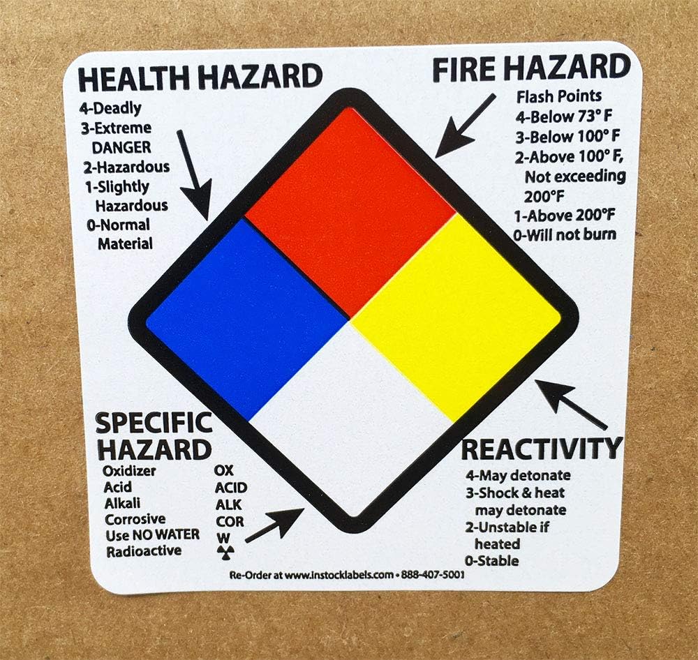 These labels provide a quick visual representation of the health hazard, flammability, reactivity, and special hazards that a chemical may pose during a fire. These are required for all manufacturers to have on their buildings.
