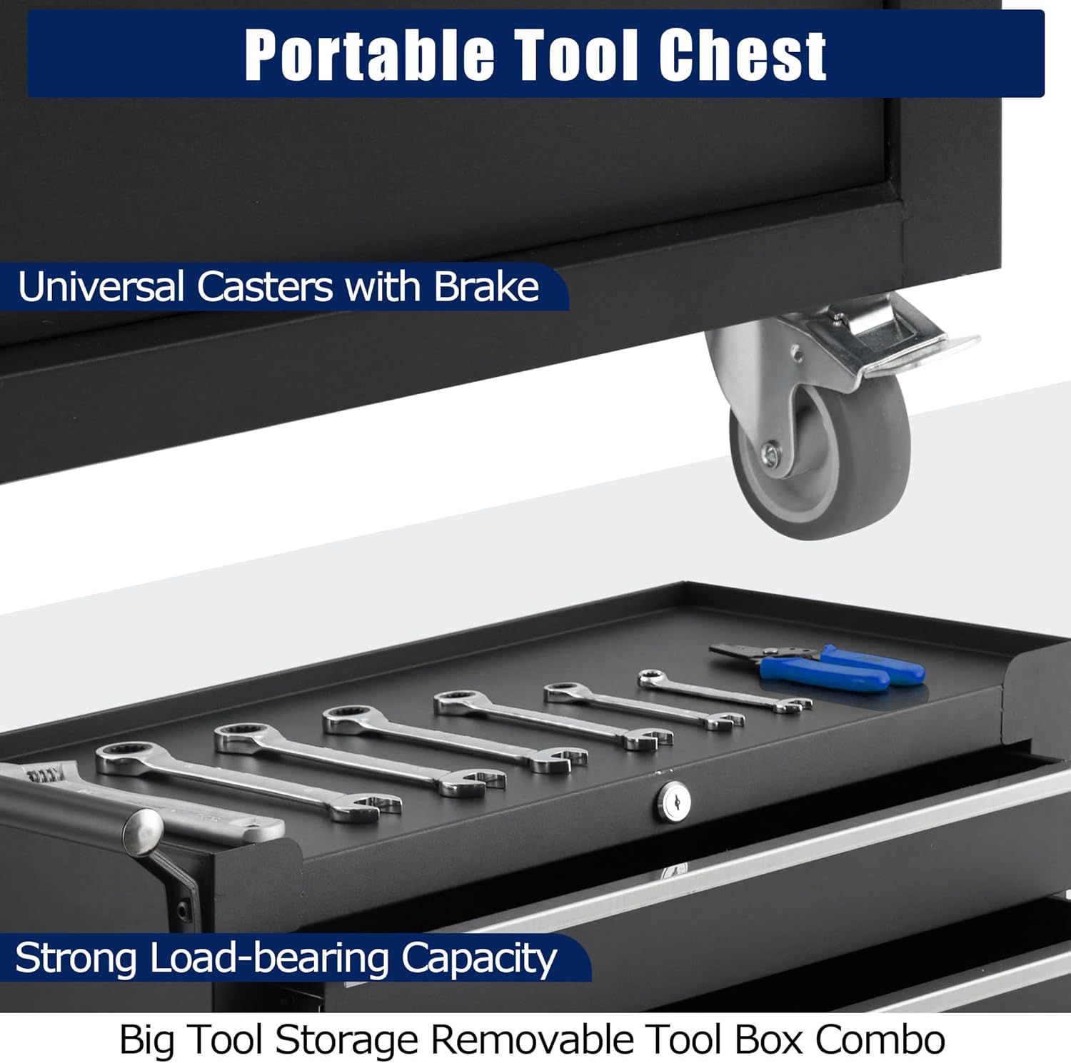 【Easy Mobility】Outfitted with reliable wheels, this storage unit glides smoothly across your workspace. Its mobility makes it suitable for both professional mechanics and DIY enthusiasts, allowing for easy transport of tools