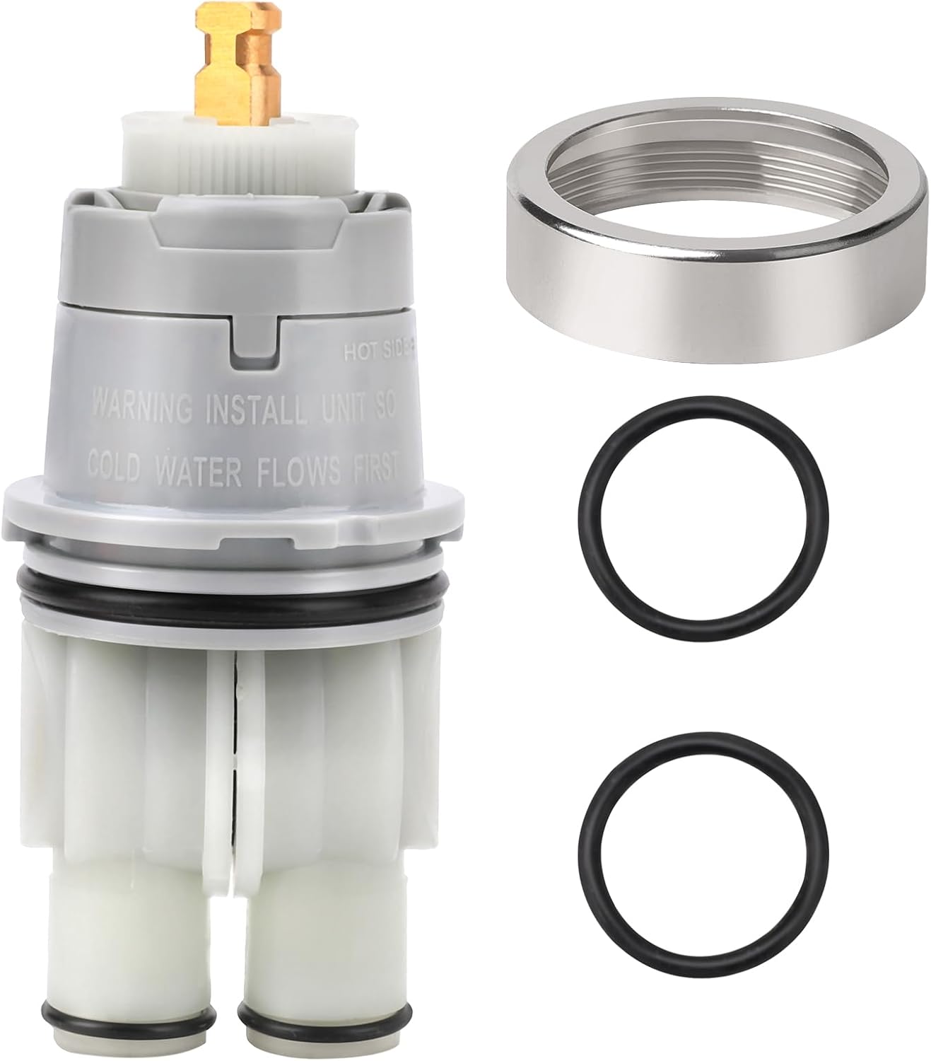 Single-handle universal valve cartridge repair assembly is made with high quality brass and extra-durable plastic, sturdy and not easy to deform. Easy to use and limit the maximum flow of hot water to prevent overheating.