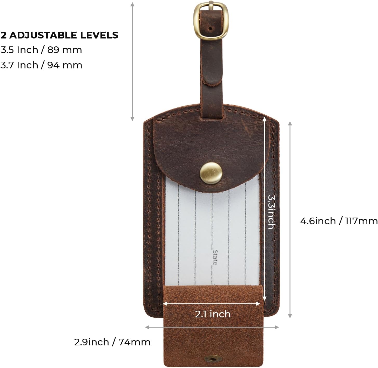 Luggage Identifier with Adjustable Buckle Straps: Adjustable buckle closure secures travel tags, perfect accessory for luggage bags. You can change the fit length from 3.5″ to 3.7″