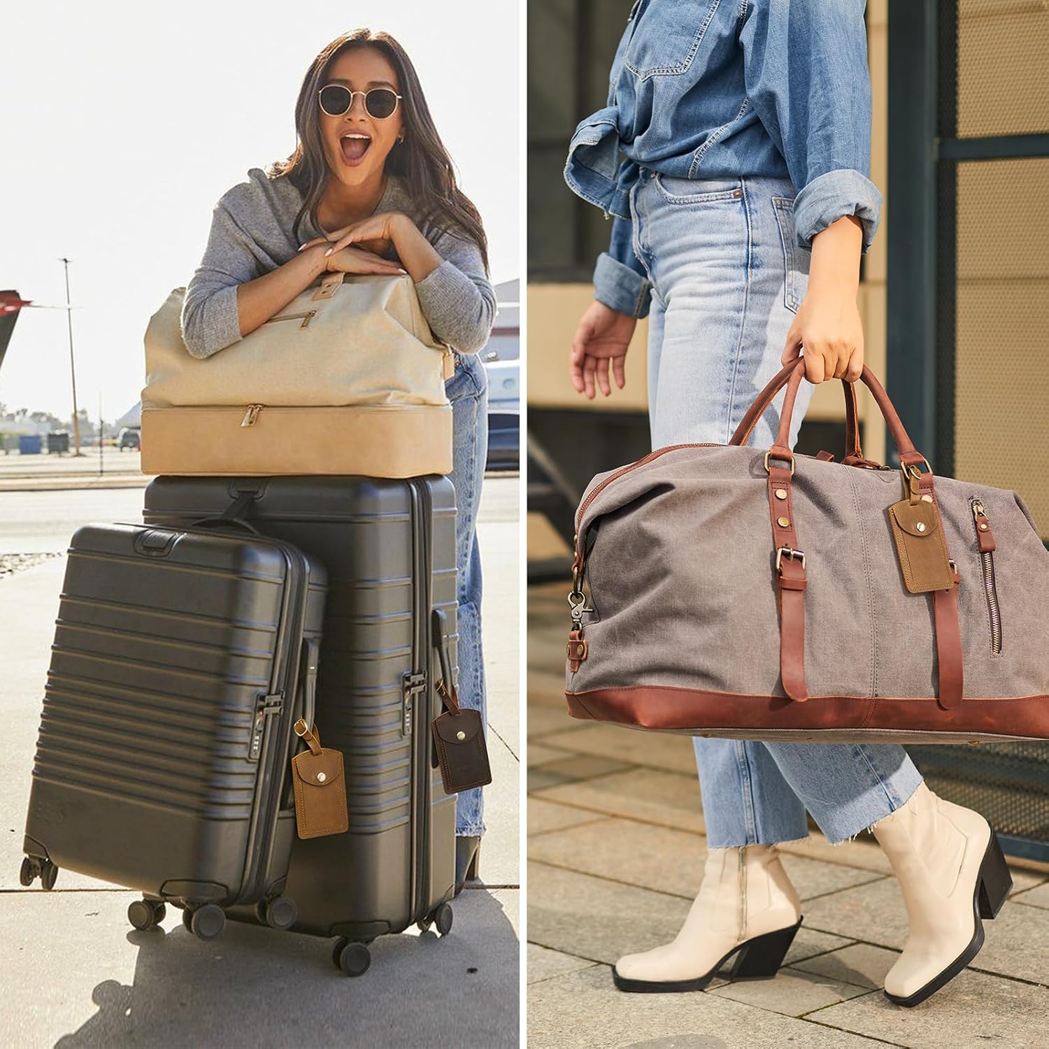 S-ZONE Leather Luggage Tag for Suitcases Tsa Approved Adjustable Personalized Travel Tags (2 Pieces Set)