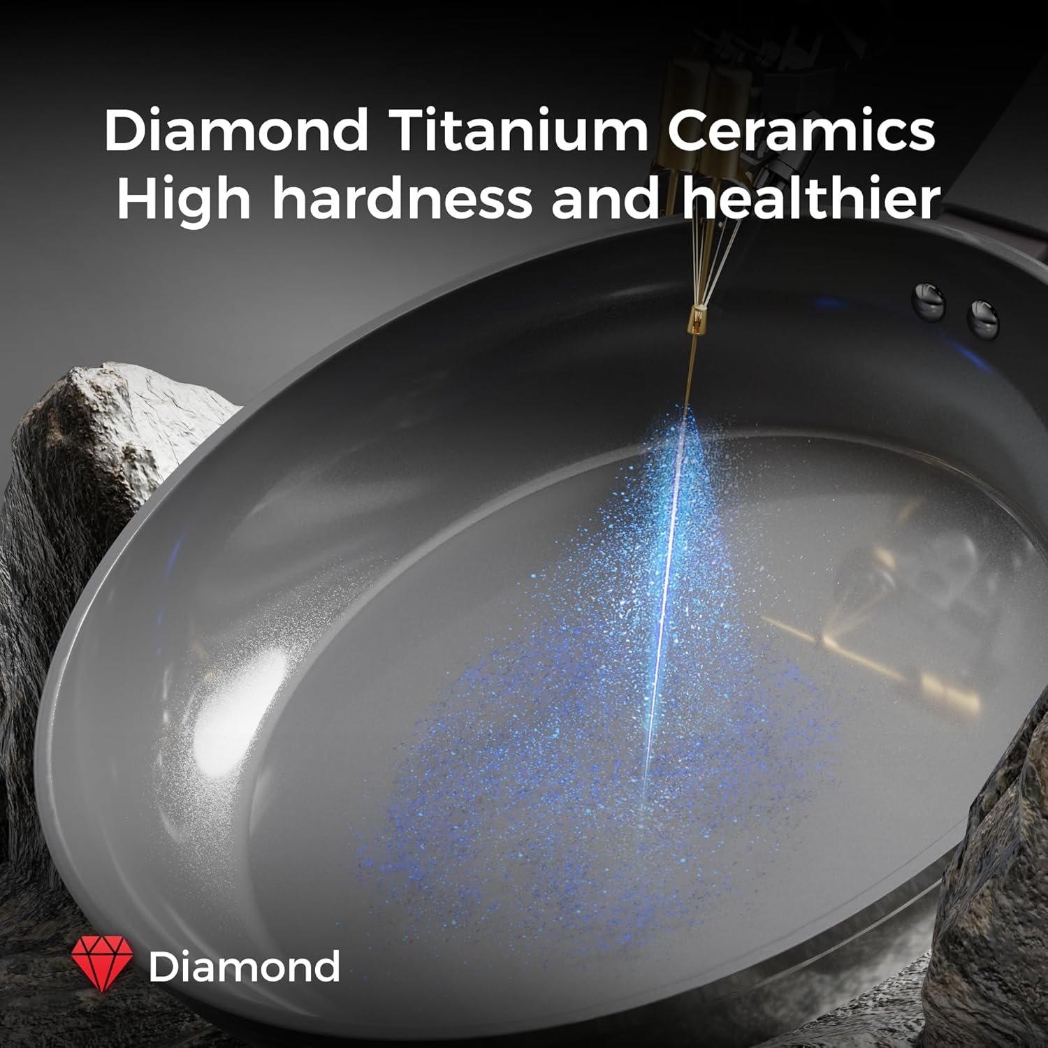 【Diamond-Grade Excellence】 Sanho nonstick frying pan features a diamond-titanium ceramic coating—5 times harder and 10 times longer-lasting. Tough and durable, it effortlessly handles the most demanding cooking challenges!