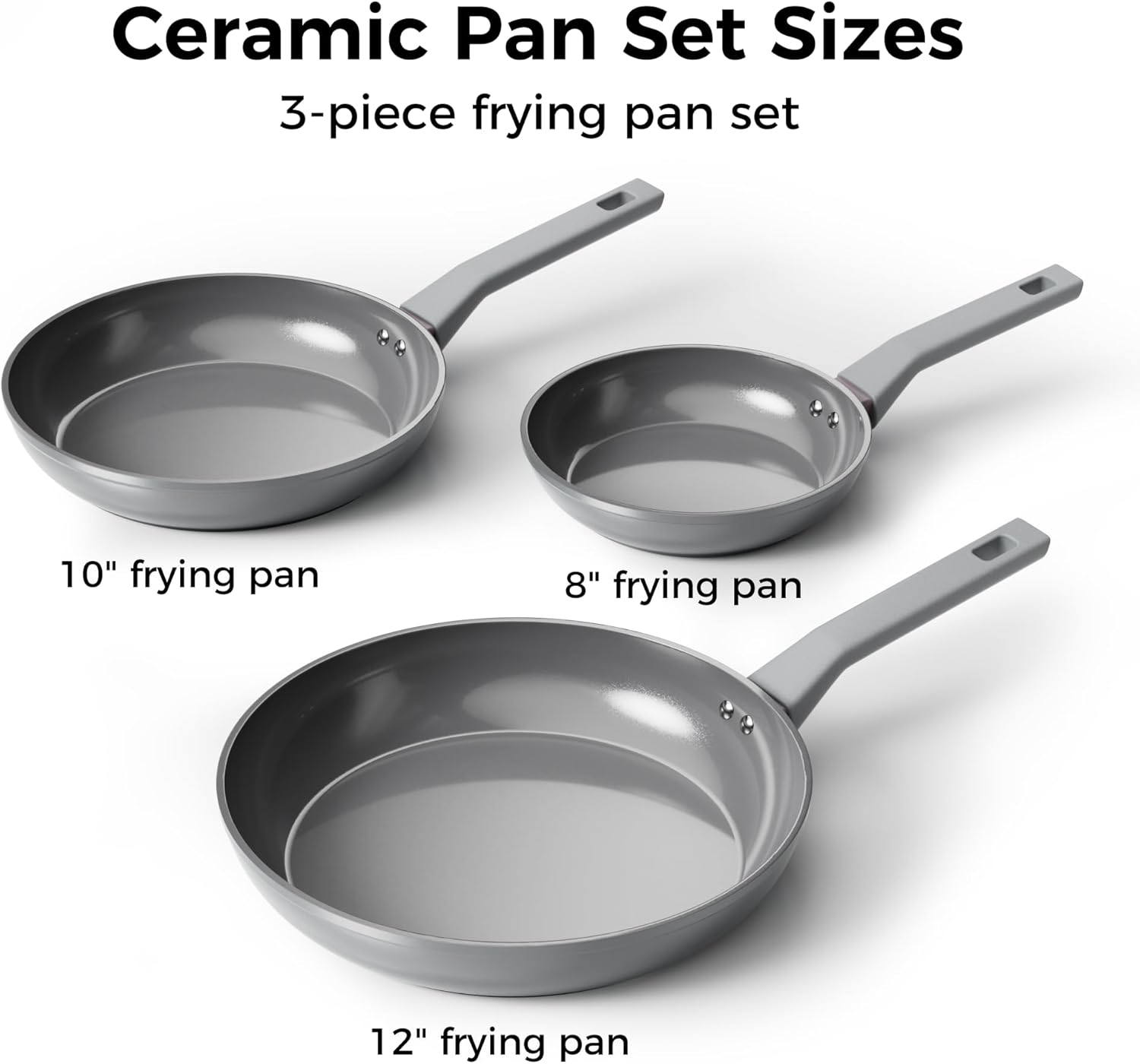 Sanho Nonstick Frying Pans Set, Ceramic Pan Skillet, Non Toxic Pans for Cooking, 8″ 10″ 12″ Ceramic Frying Pan Set PFAS & PTFE & PFOA Free with Stay Cool Handle, Dishwasher & Oven Safe, Gray