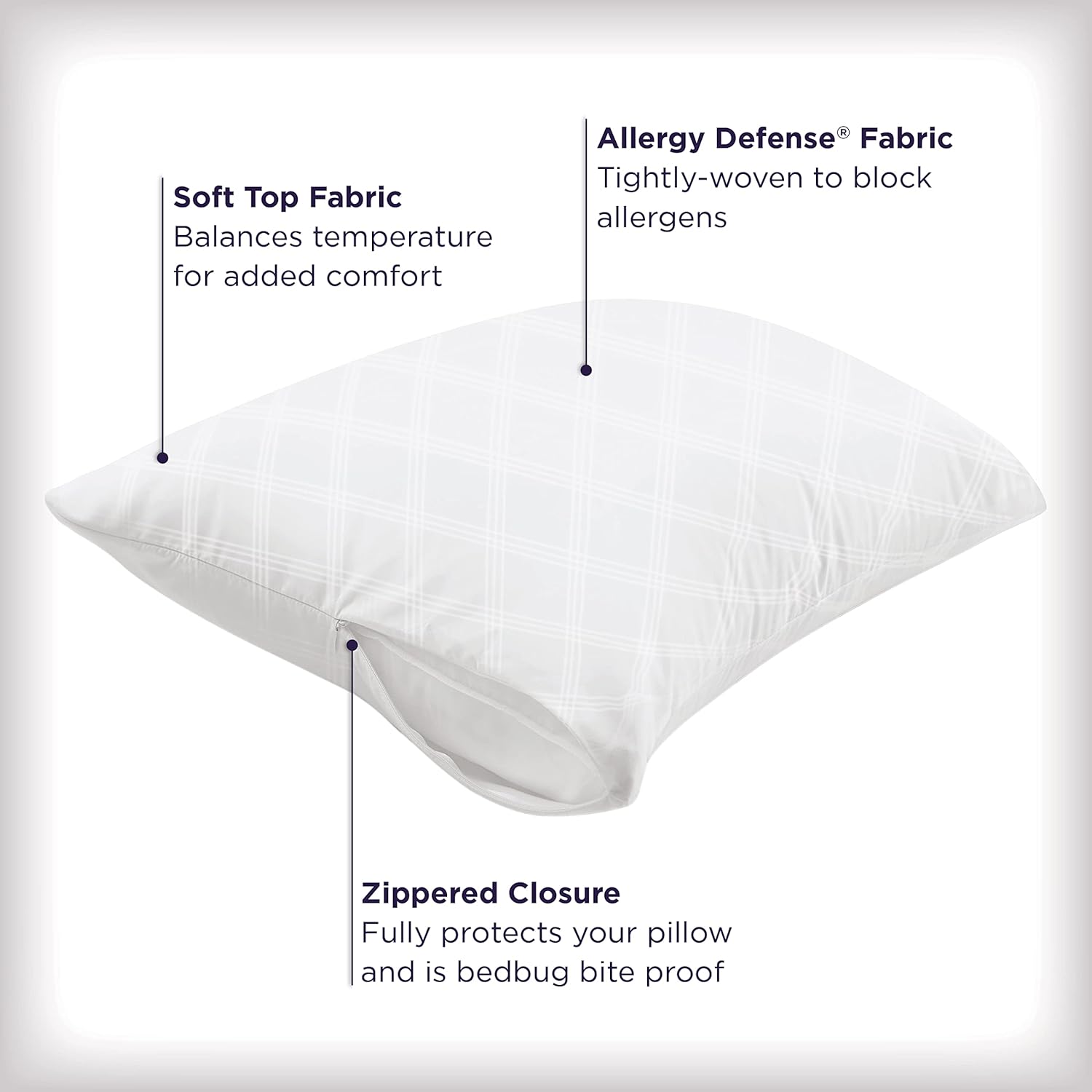 Soft fabric covers your pillow, and the zipper closes for complete protection.