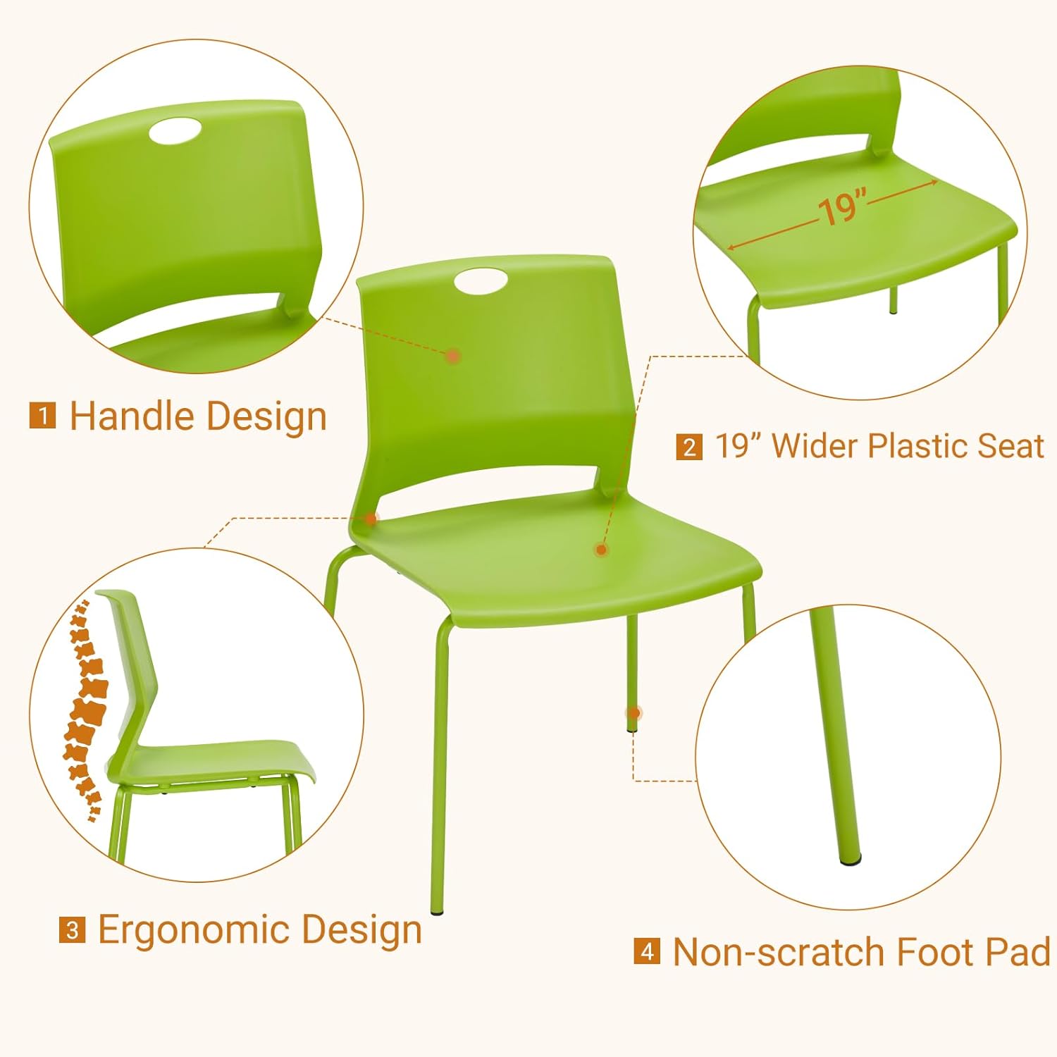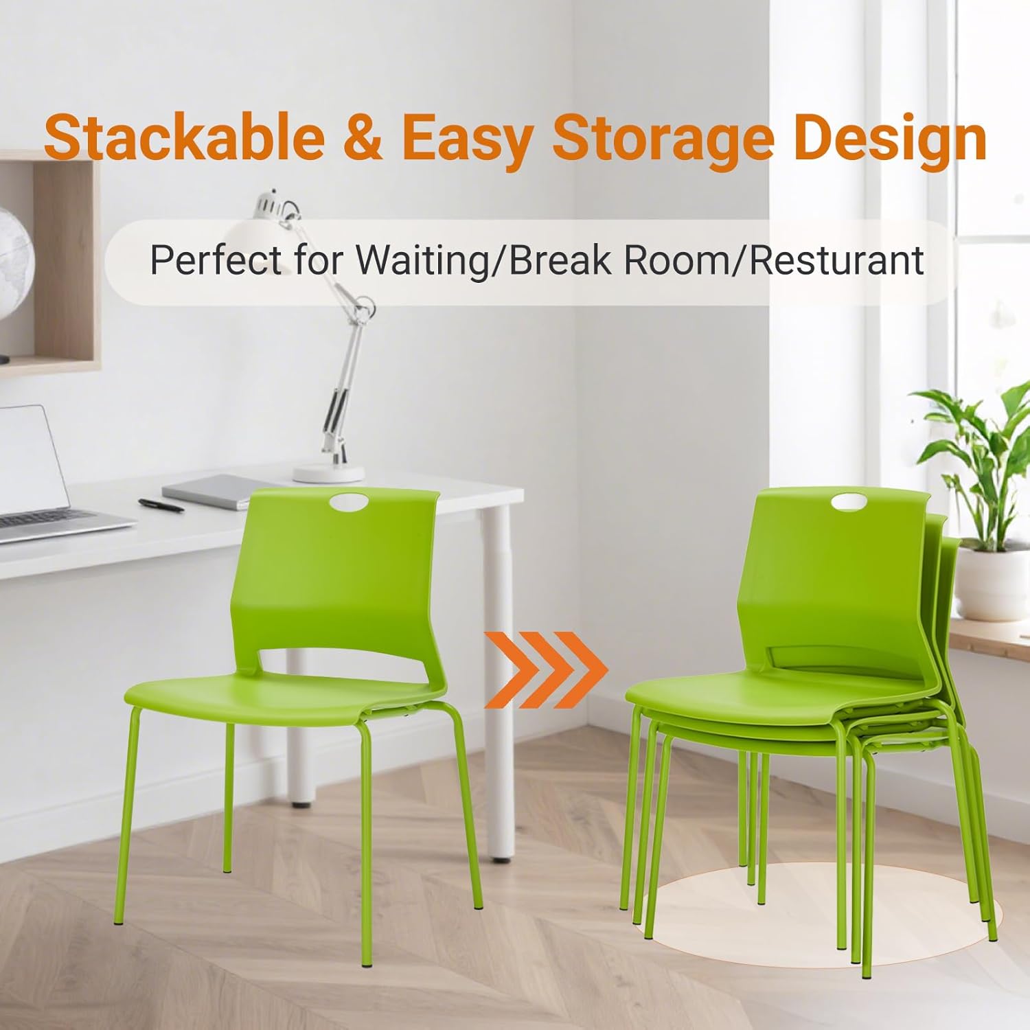 Conference room chairs stackable set of 4, reception chairs with plastic seat, stacking chairs for waiting breakroom classroom