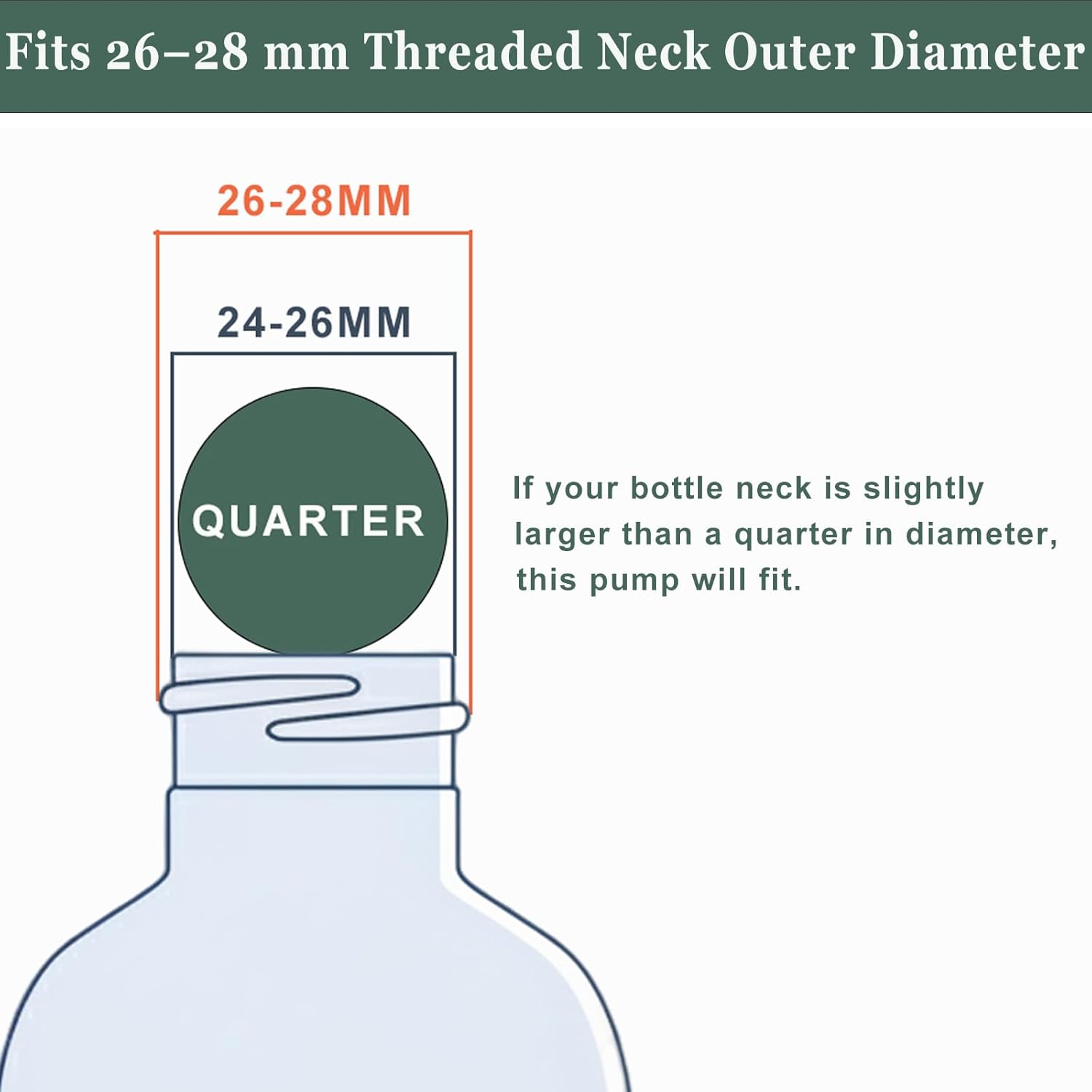STANDARD SIZE: soap dispenser pump replacement parts for bottle thread size of standard 28 / 400 (26 – 28mm). The tube length is 8 inches and can be cut as needed. Note: Please confirm the size before purchasing