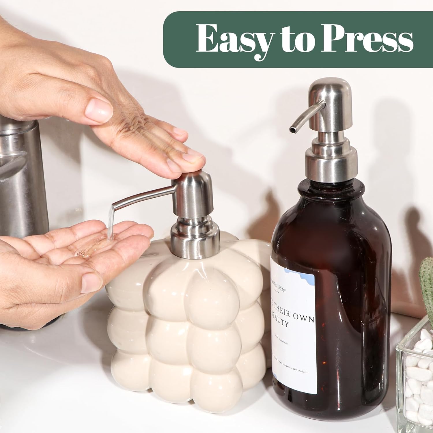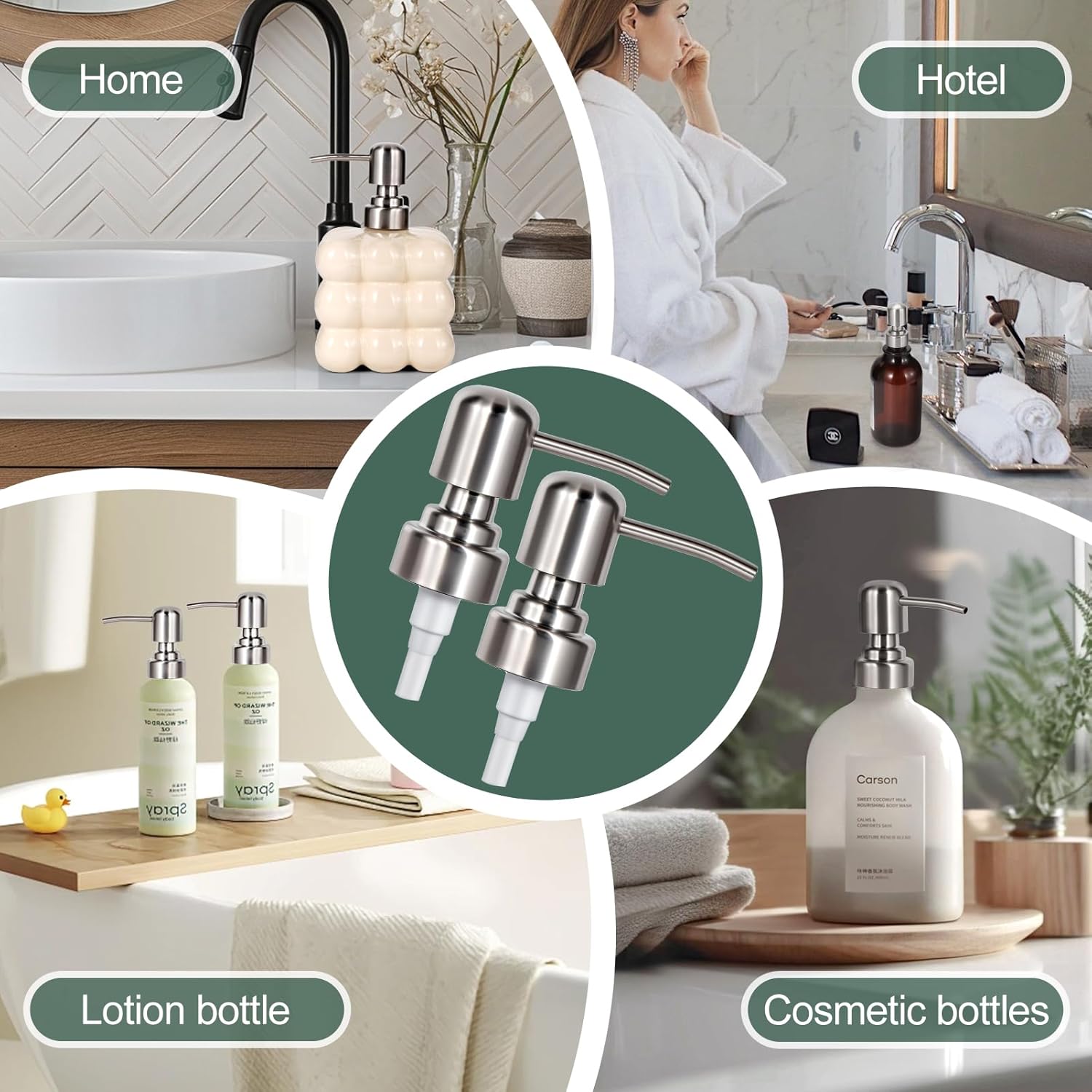 WIDE COMPATIBILITY: Use this stylish stainless steel soap dispenser replacement pump on your soap bottle to Create a unique soap dispenser that suits your style and extends its lifespan
