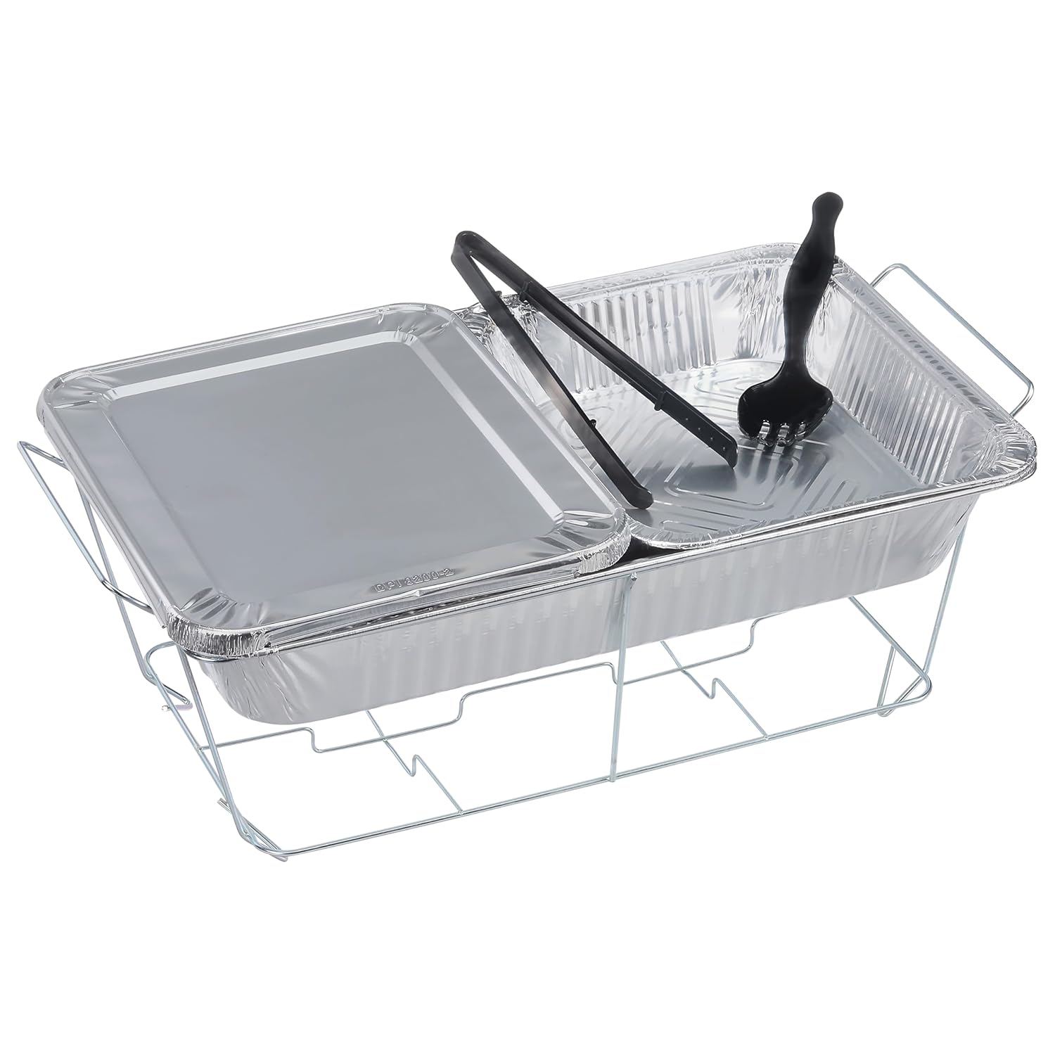 Food Chafing Dish Set for Hot Meals (9-Pack) : Our chafing dish buffet set includes 9 SETS each comprised of: 1 wire rack, 1 water pan, 2 half-size food pans, 2 lids, 1 serving spoon, and 1 serving tong. For best results, use with Sterno canned heat (NOT INCLUDED)