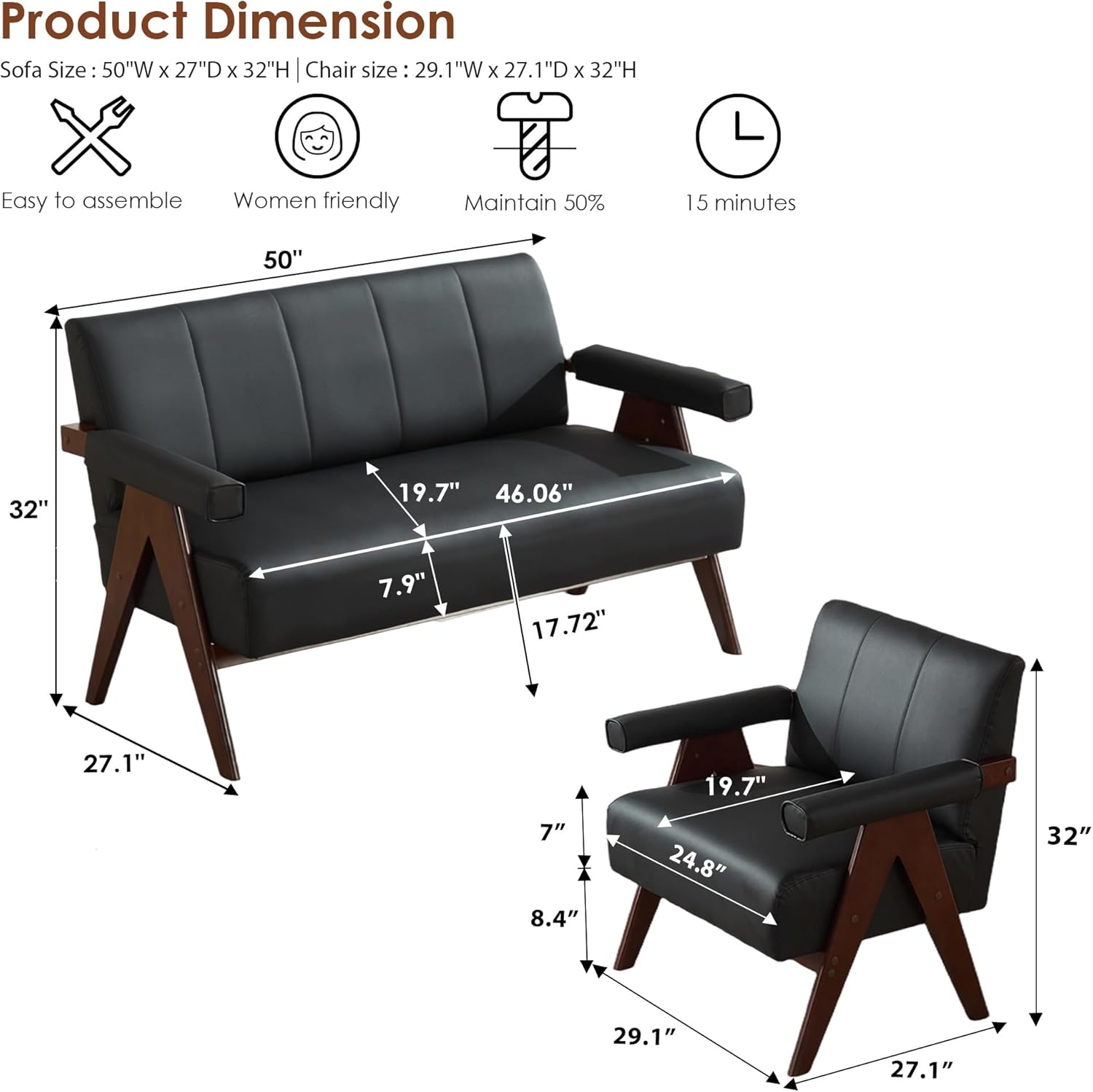Effortless Assembly & Quality Support: Don’t worry about complicated setup! This living room furniture sets take only 15 minutes to assemble. We also provide top-notch customer service to address any concerns you may have. While slight color variations may occur due to monitor settings, but the premium leather is guaranteed to complement your space beautifully.