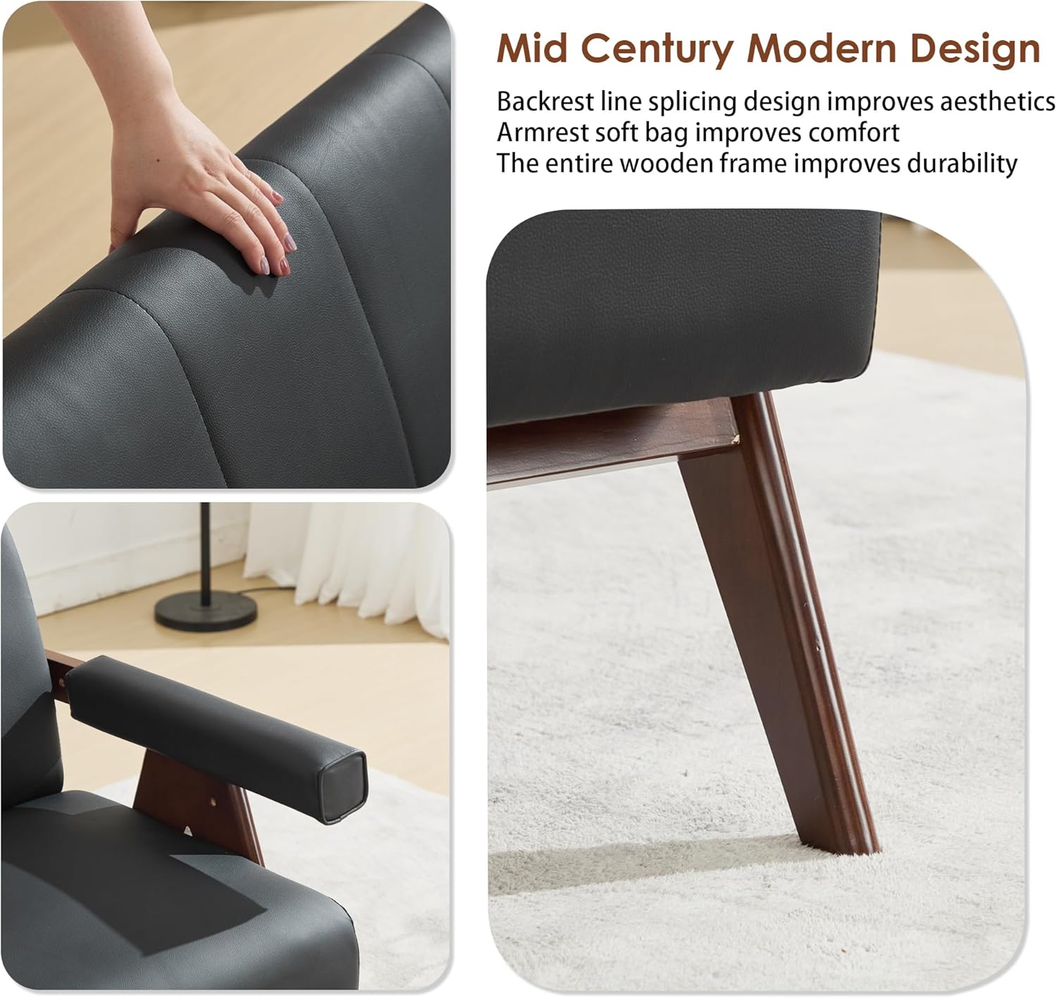 Mid-Century Modern Aesthetic That Elevates Any Space: With dark walnut armrests, smooth black leather, and refined vertical stitching, this mid century modern furniture set enhances your professional environment. Its timeless design complements office furniture or living room furniture sets with understated elegance.