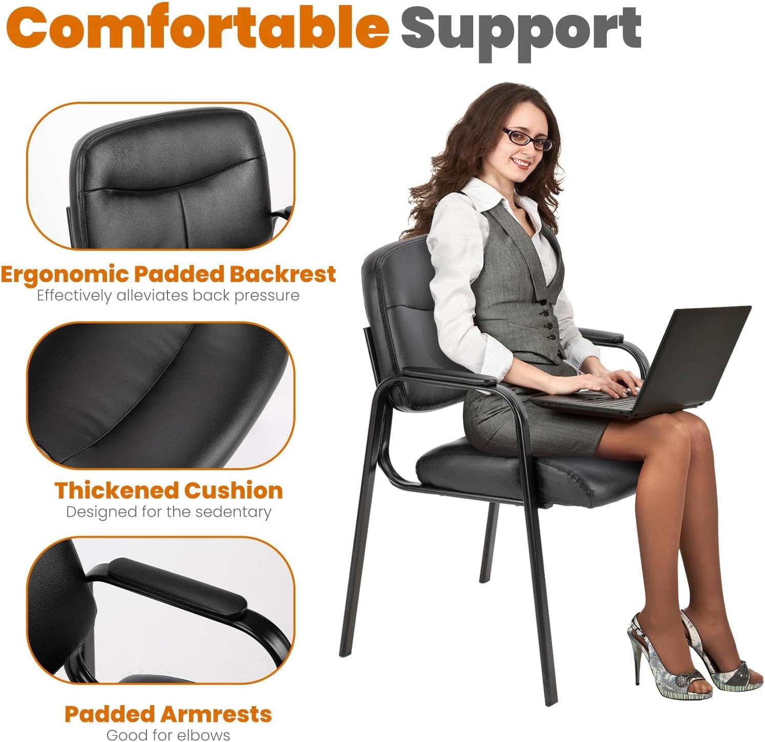 【Fashionable and beautiful】The office guest chair is made of black leather and black metal frame, beautiful appearance, can be integrated with various decorations. The reception chair is the first choice for conference room, office, Waiting room, study room, library and so on