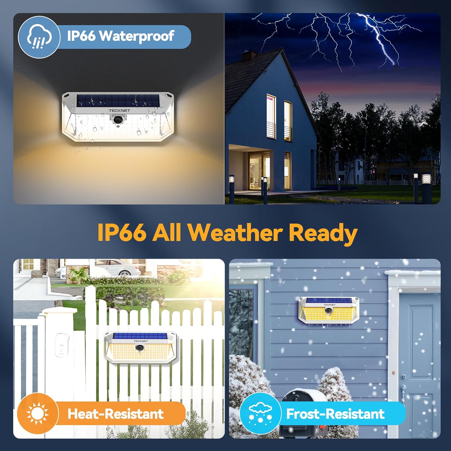 Compared with ordinary solar lights, the TECKNET 416LEDs solar lights outdoor waterproof for outside can provide brighter light and a wider lighting range
