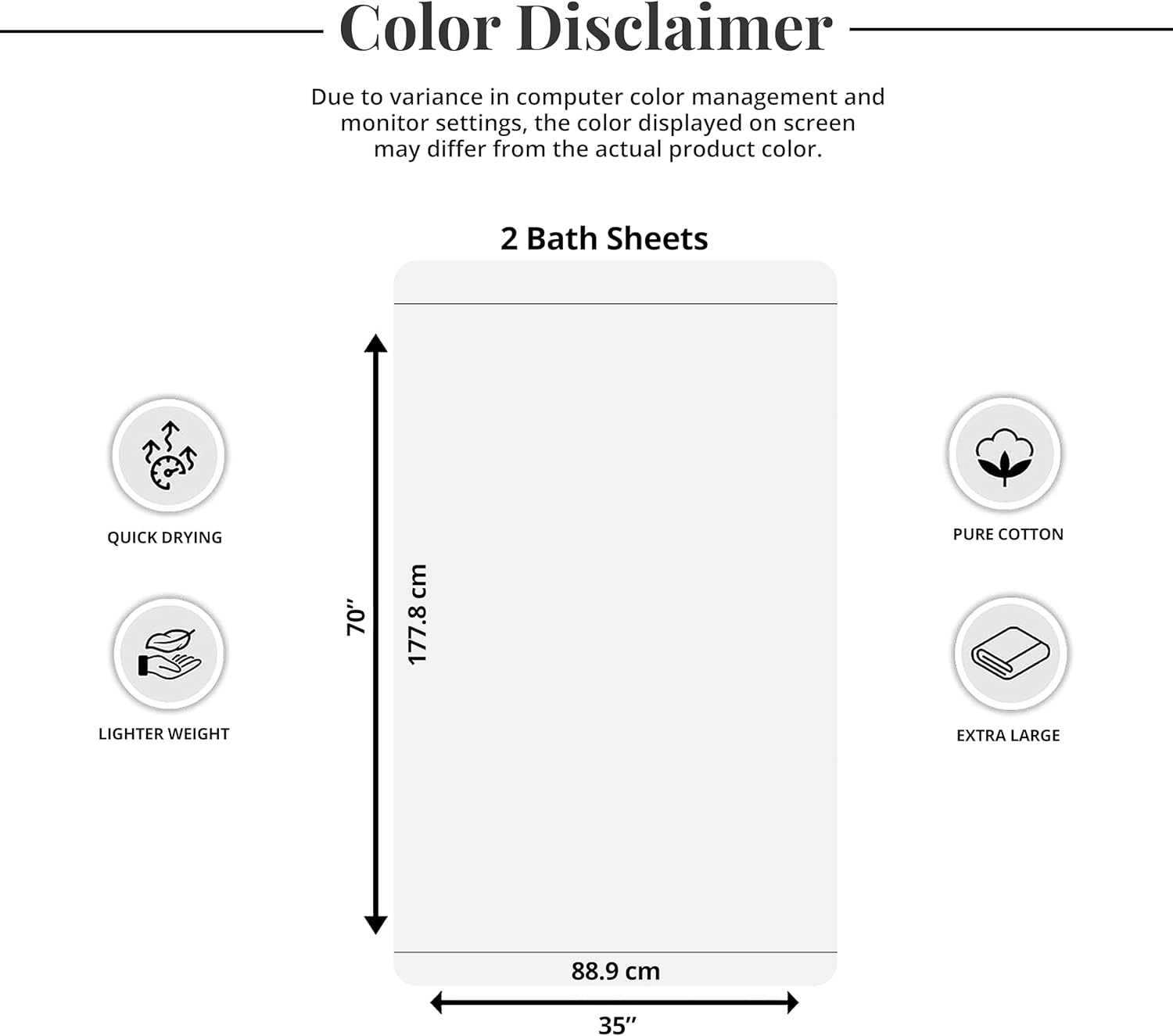 Larger: This package contains two generously sized bath sheets, each measuring 35 x 70 inches, perfect to wrap yourself in