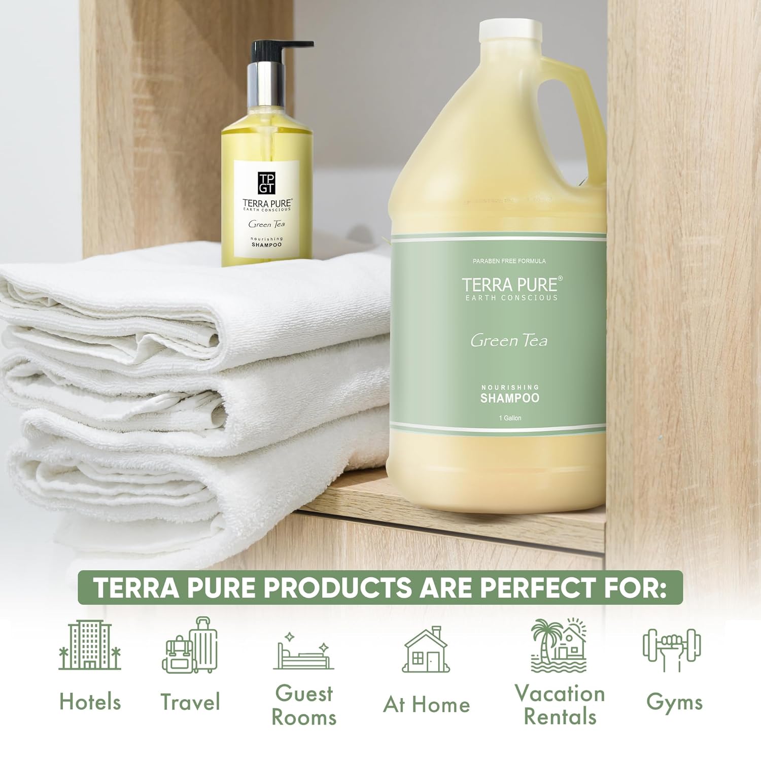 Terra Pure Green Tea Pumps & Gallons Hospitality Set Shampoo Conditioner Body WashTerra Pure Green Tea Pumps & Gallons Hospitality Set Shampoo Conditioner Body Wash
