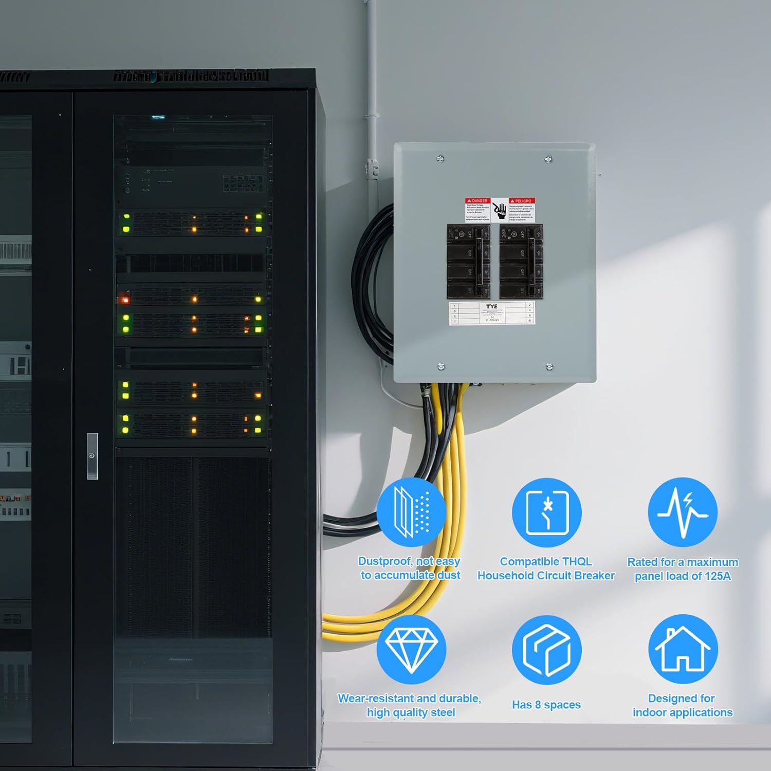 THQL Circuit Breaker Panels, 8-Space, 125A Circuit Breaker Distribution Box, 120V/240V Circuit Breaker Electrical Enclosure,Indoor Main Lug Load Center