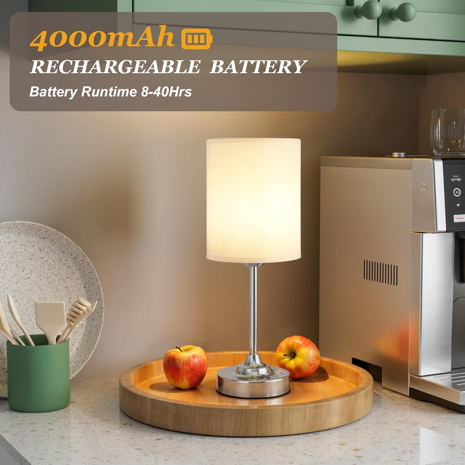 Powered by a robust 4000mAh battery, this table lamp achieves a full charge in just 4-6 hours via USB-C. Enjoy extended cordless use with up to 40 hours of soft light per charge actual duration varies by brightness setting) —ideal for creating daily ambiance or serving as a reliable emergency light