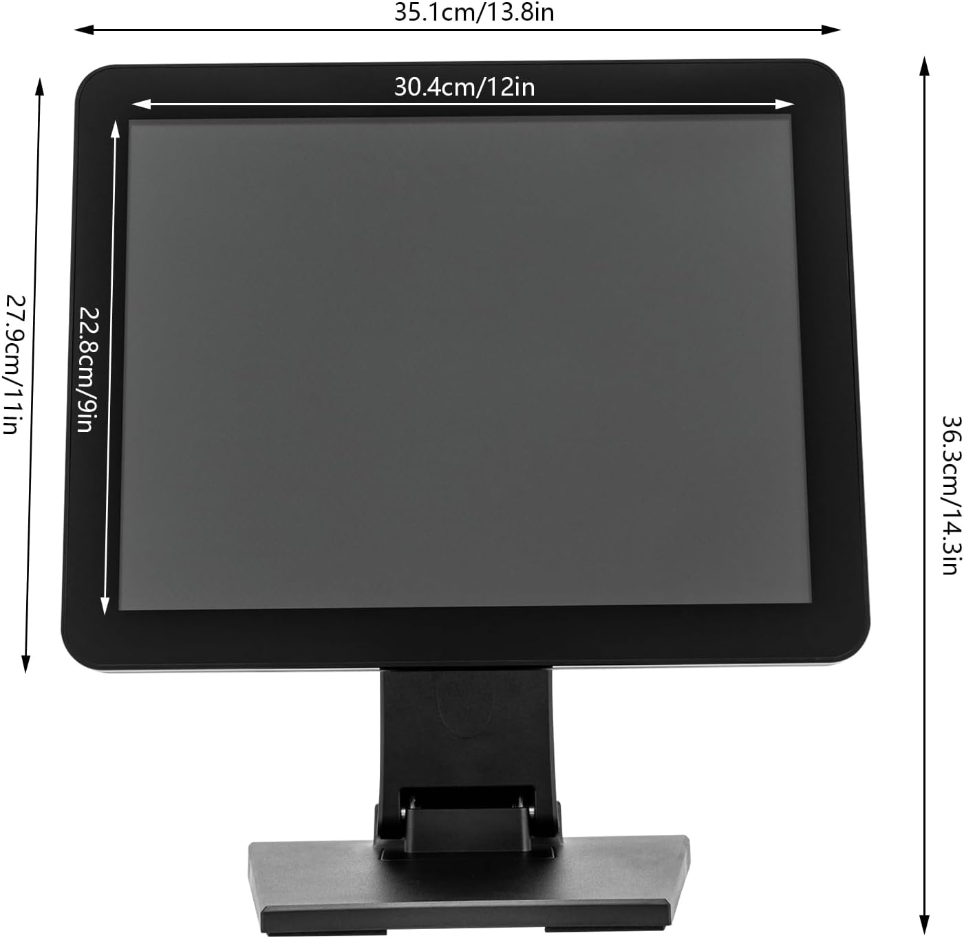 Adjustable, foldable & space-saving: The 15” pos-touch-screen-monitor,0-90° angle adjustment for standing/sitting use, foldable design fits compact stores; supports tabletop or wall-mounted installation (29.53-39.37in spacing)
