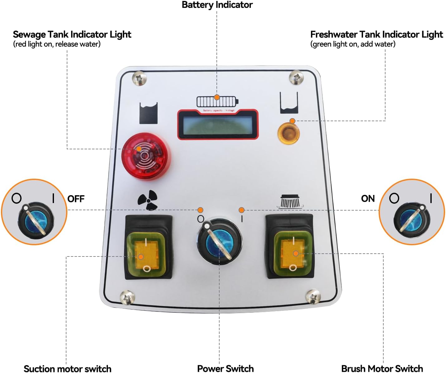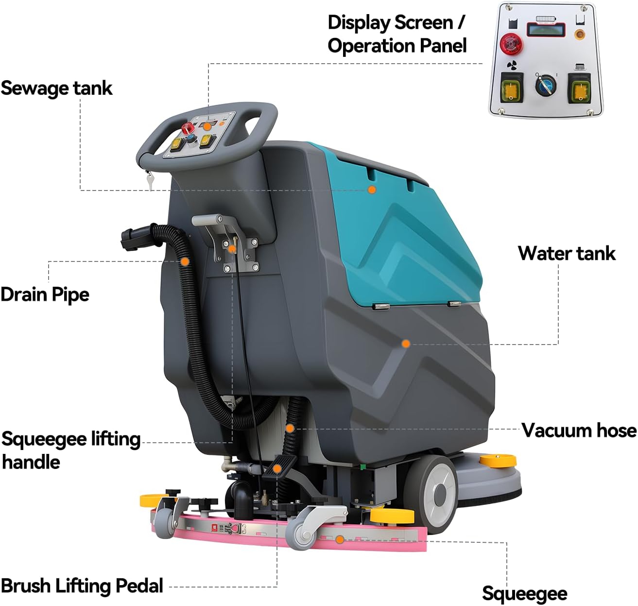 Ample Tank Capacity: Equipped with a 15.9-gallon solution tank and a 18.5-gallon sewage tank, it efficiently manages water during the cleaning process. The rotationally molded polyethylene housing is resistant to corrosion and impact, while the anti-collision design enhances maneuverability of the floor scrubber.