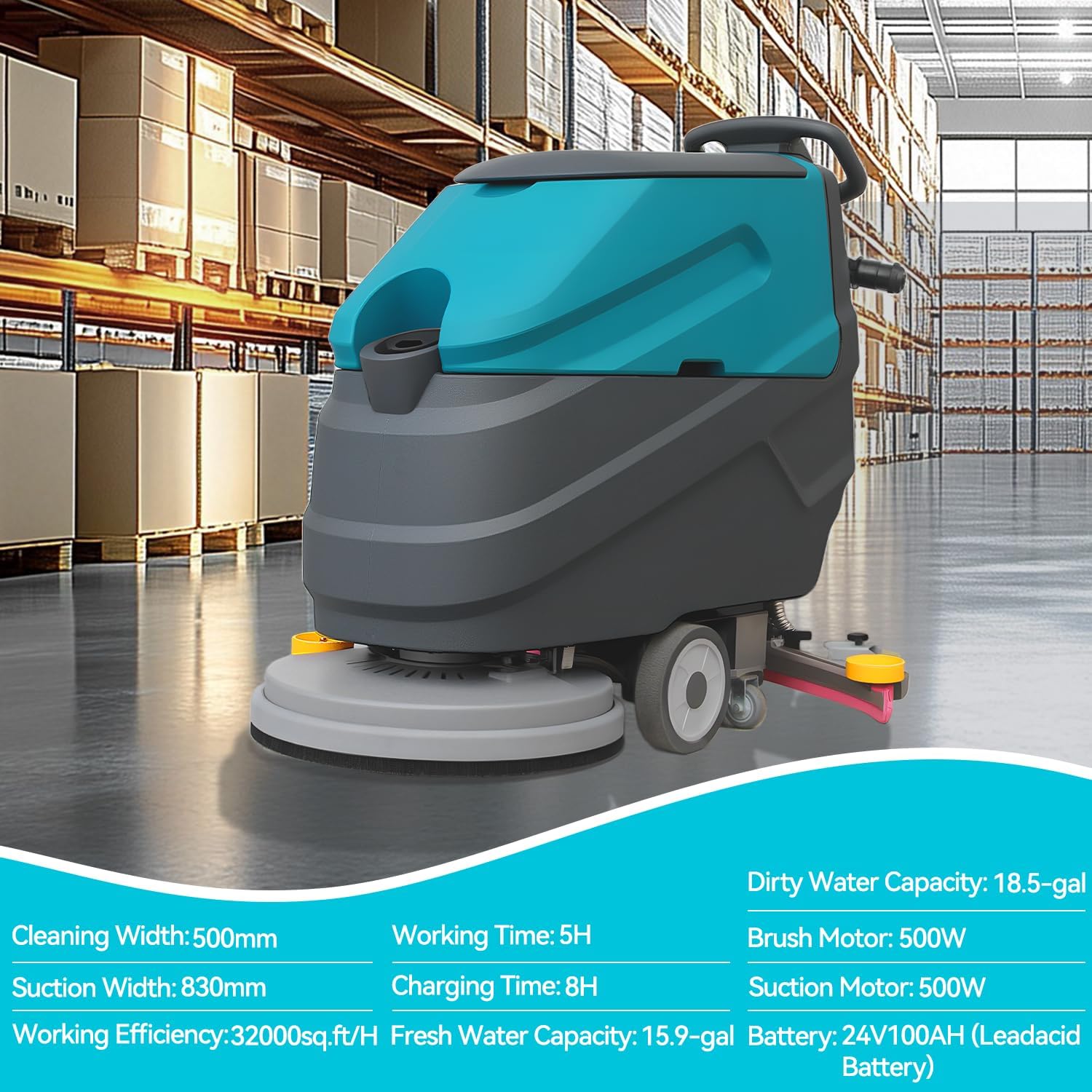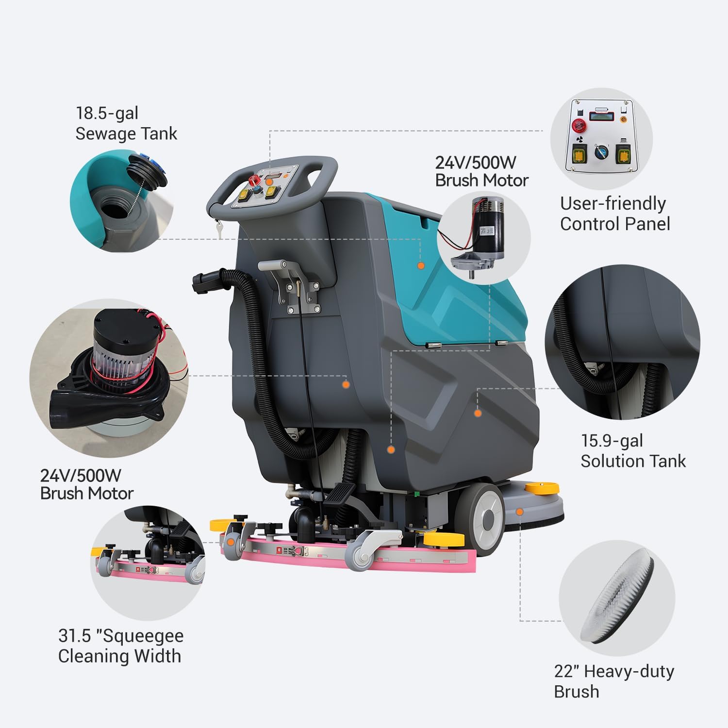Efficient Cleaning Coverage: 22″ cleaning width and 31.5″ squeegee suction width for comprehensive floor coverage in a single pass, clean up to 32,000 square feet per hour.