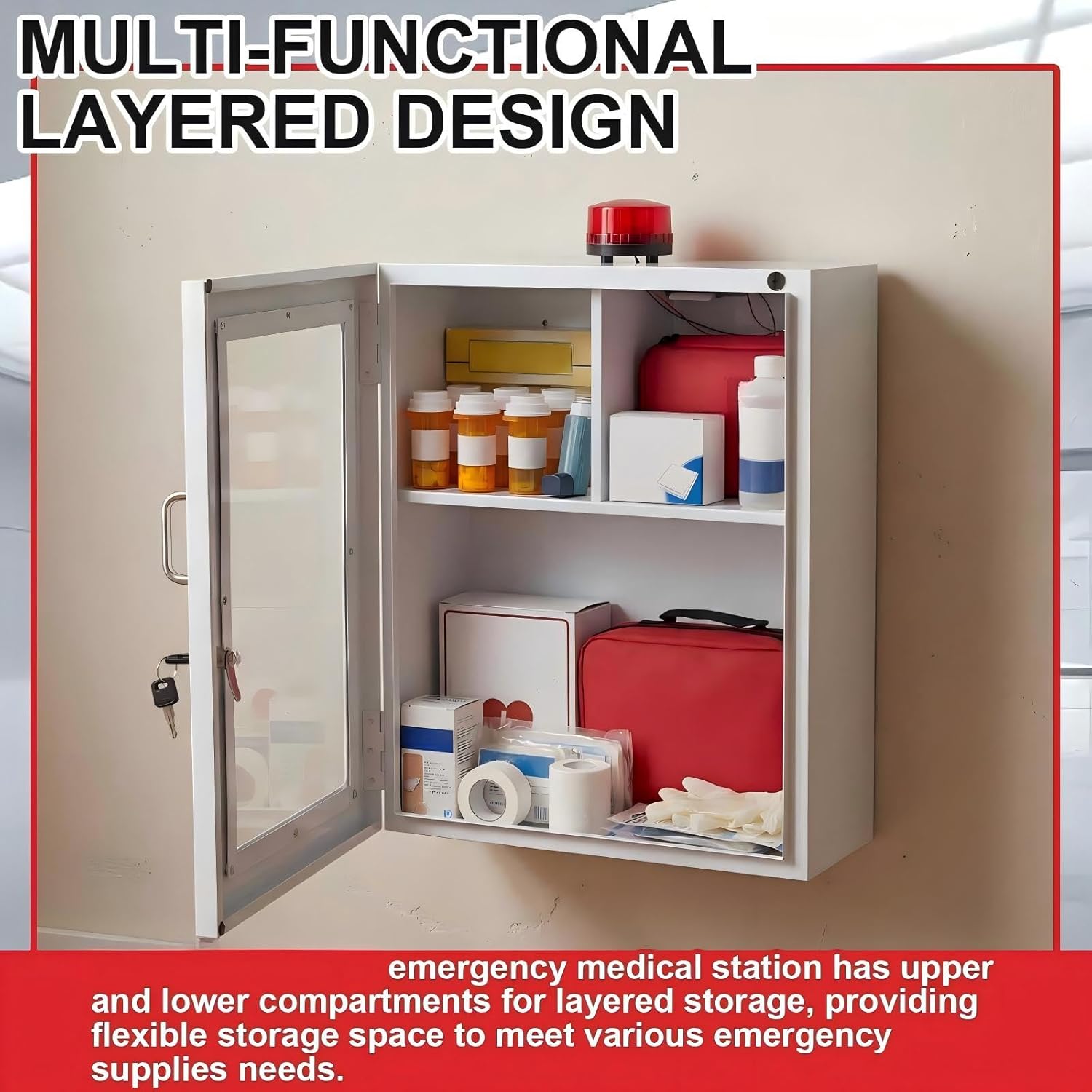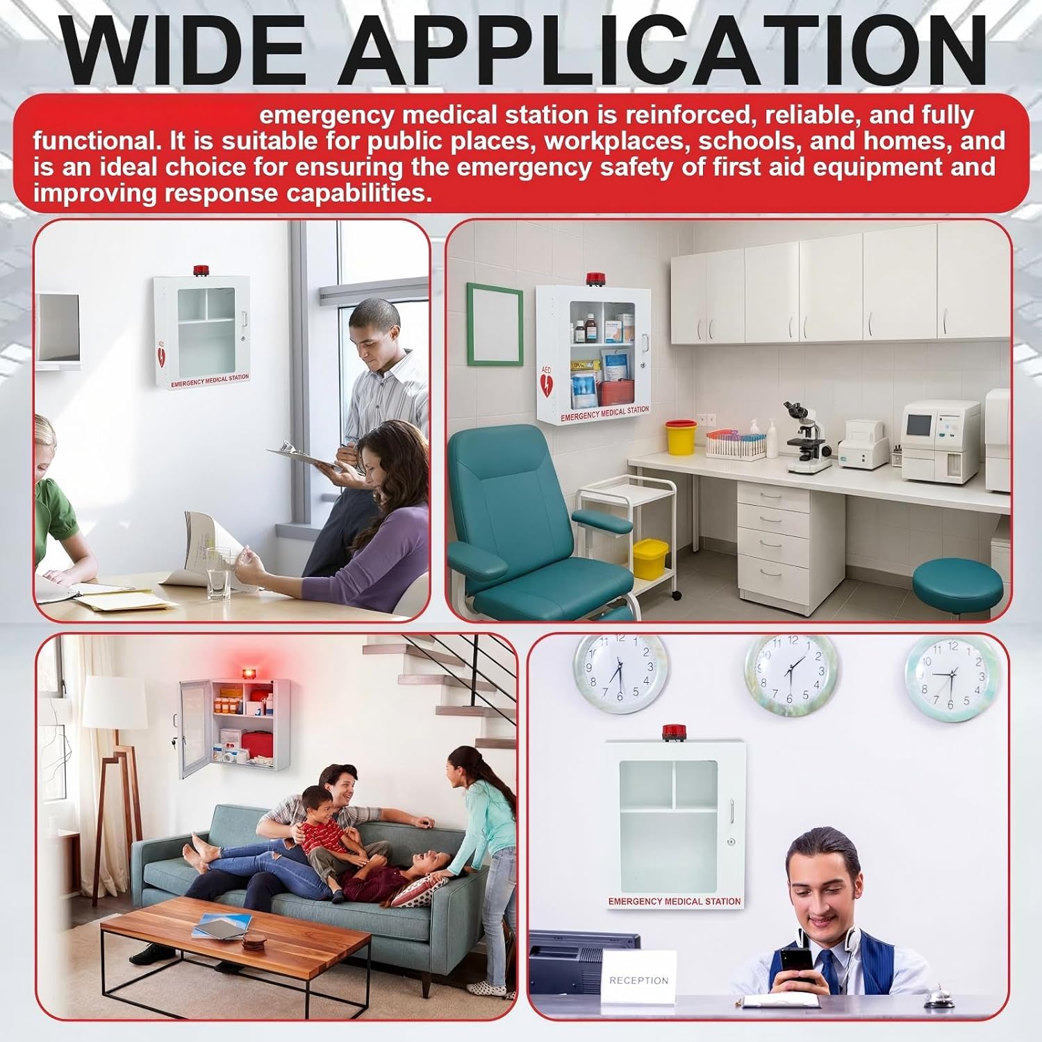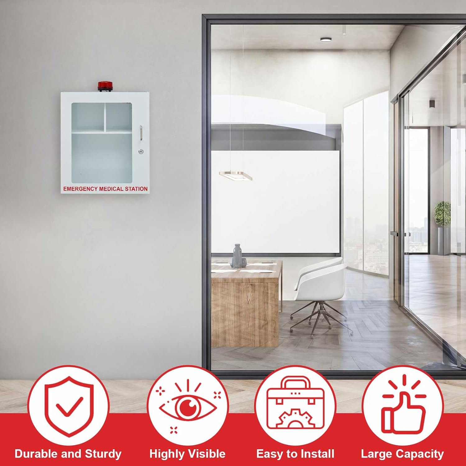 The Best Choice: our wall mount cabinet is a robust, reliable, and fully functional emergency medical storage; Suitable for public places, workplaces, schools, and homes, it is the ideal choice for ensuring the safety of emergency equipment and enhancing emergency response capabilities